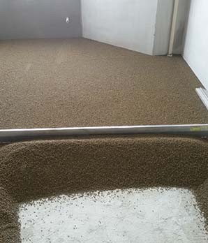 - Монолитной. Предварительно очищается основание пола, после чего на поверхность заливают раствор. После высыхания раствора он крепко связывается с основанием, образуя единый монолит, который выдерживает максимальные нагрузки и не покрывается трещинами.